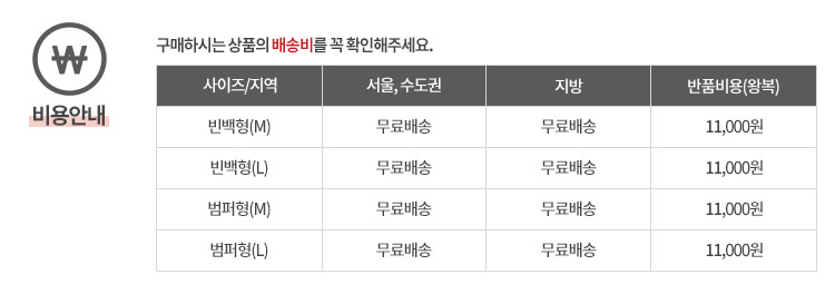 - 배송비 : 배송비 및 배송정보는 상품 상세페이지를 참고해주세요.